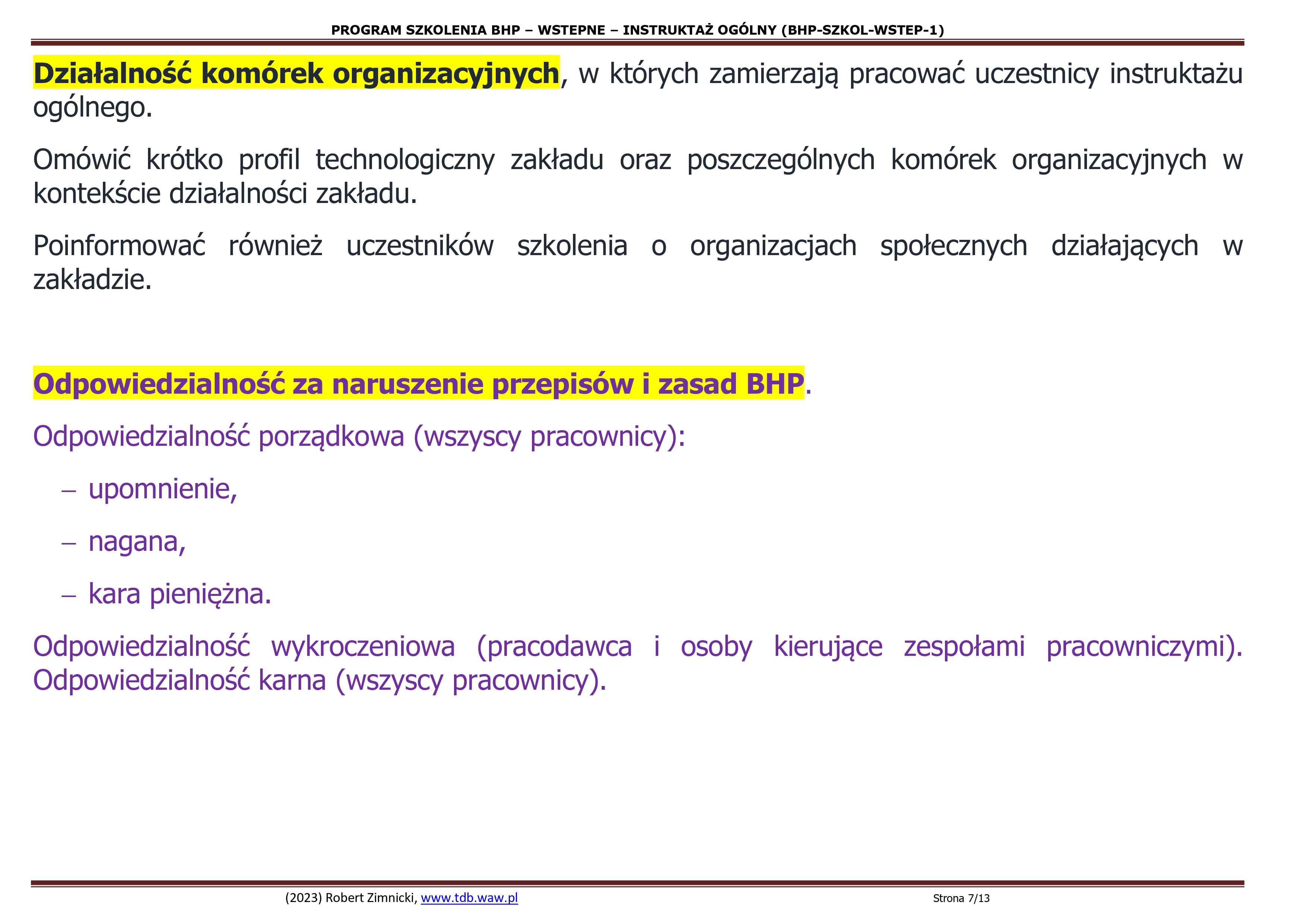 1.3.Odpowiedzialność za naruszenie przepisów lub zasad bezpieczeństwa i higieny pracy